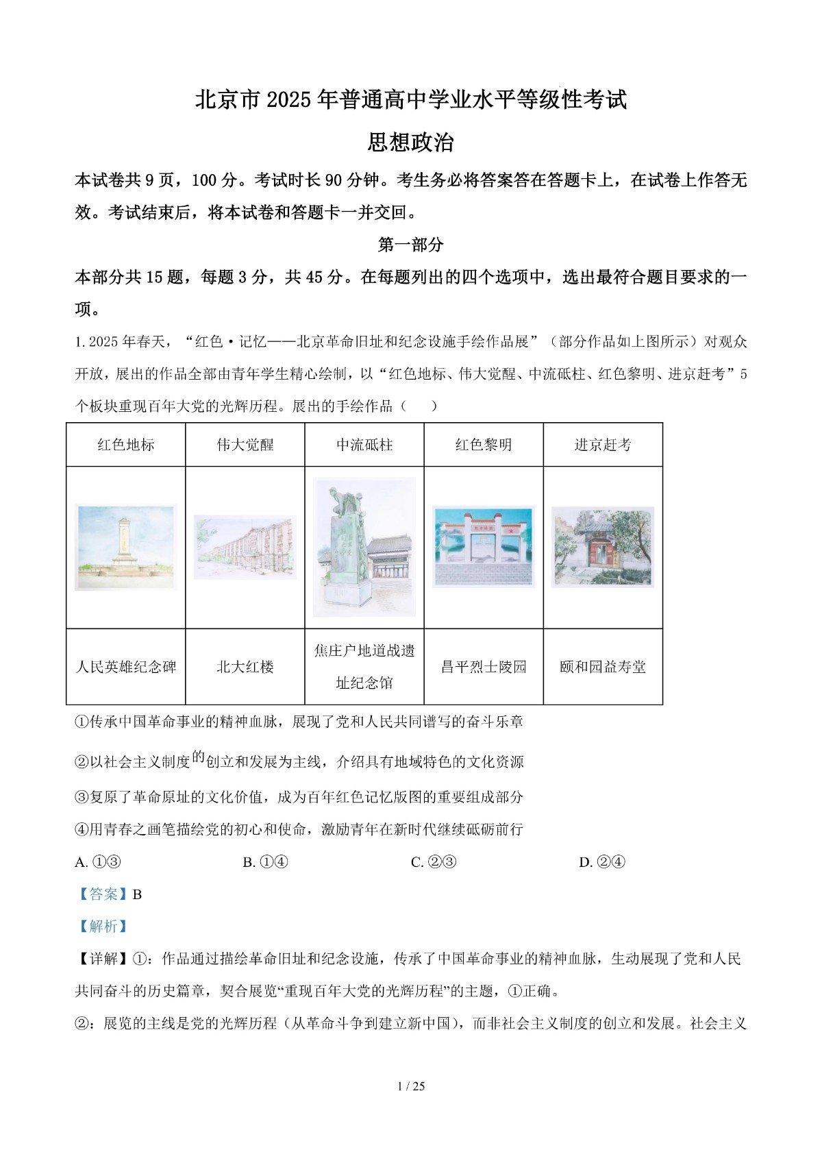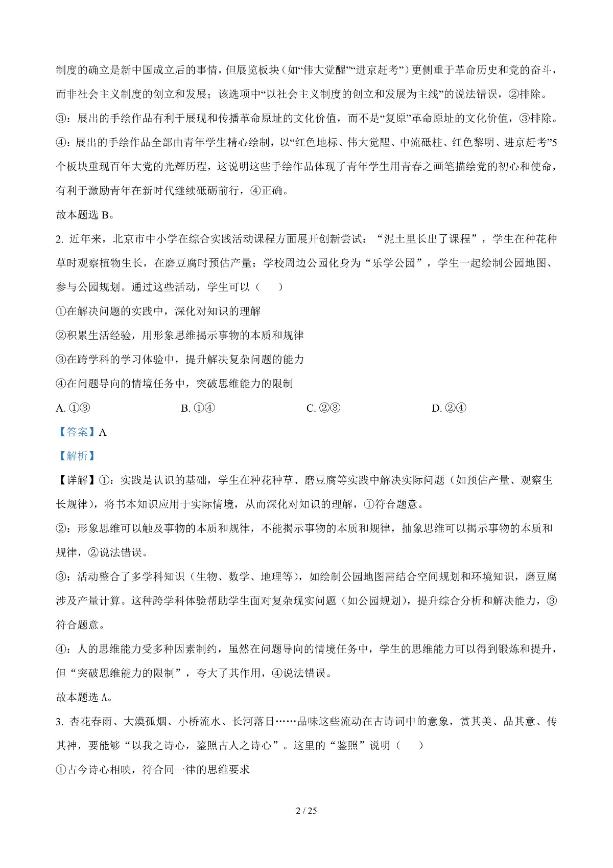2025年高考真题北京卷——政治(解析版)