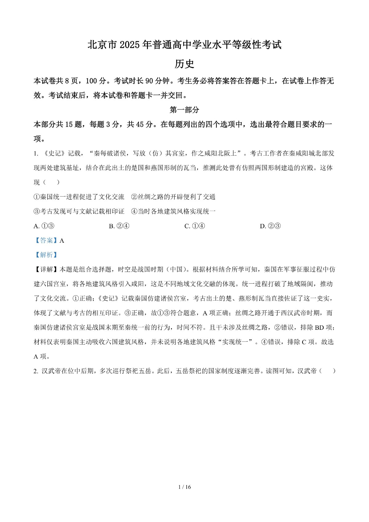 2025年高考真题北京卷——历史(解析版)