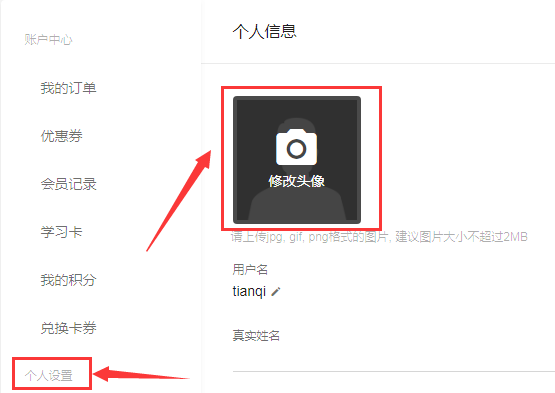 3、点击个人信息,点击修改头像即可