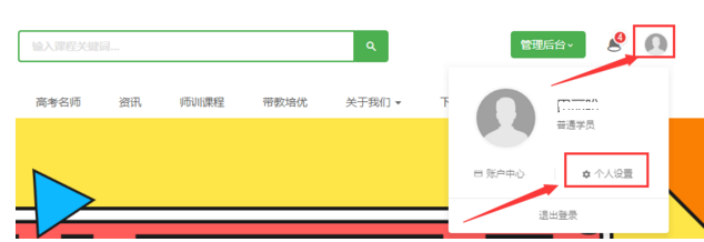 1、进入优易课官网,登录个人账户,点击右上方头像,选择个人设置