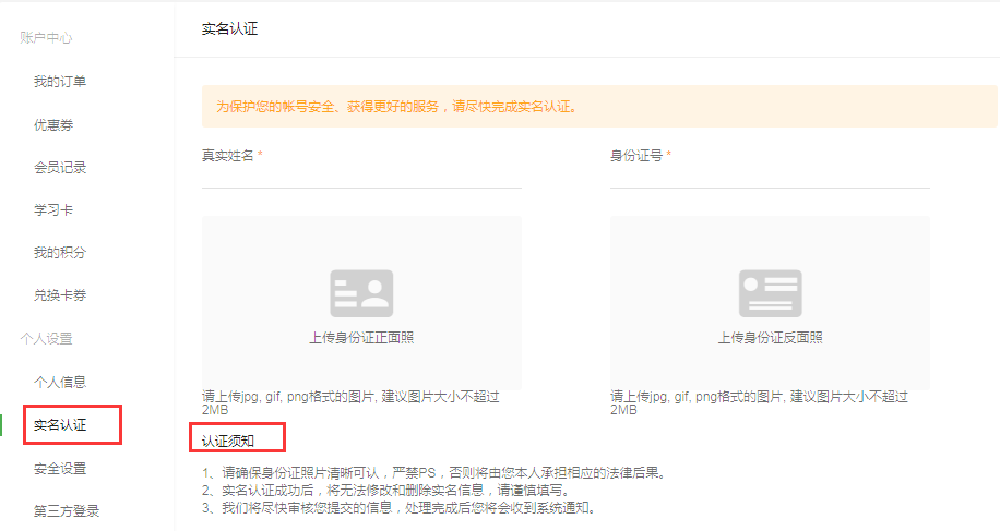 2、选择实名认证,按照要求进行认证即可
