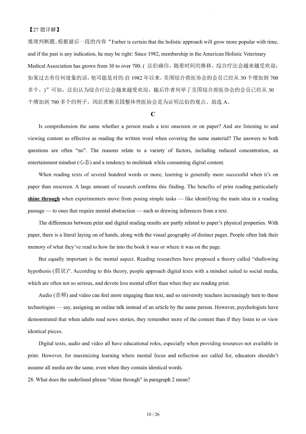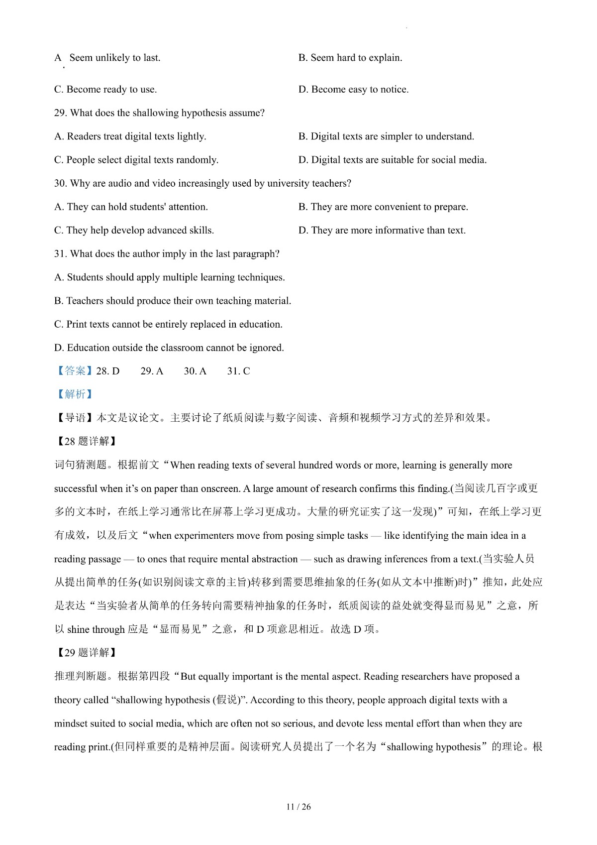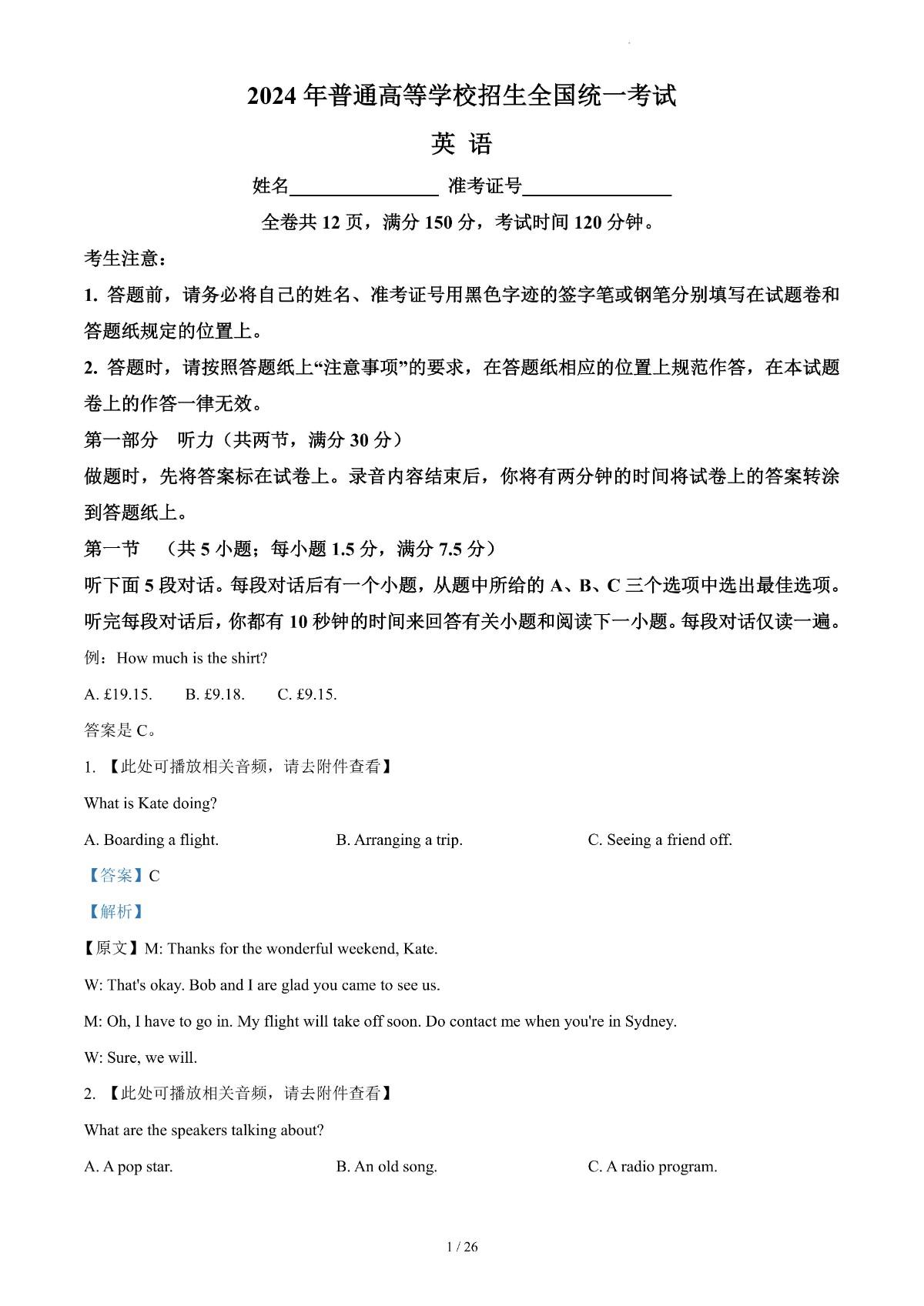 2024年高考真题——英语(新高考Ⅰ卷) 解析版