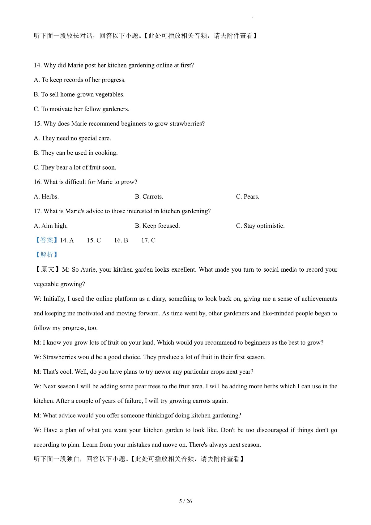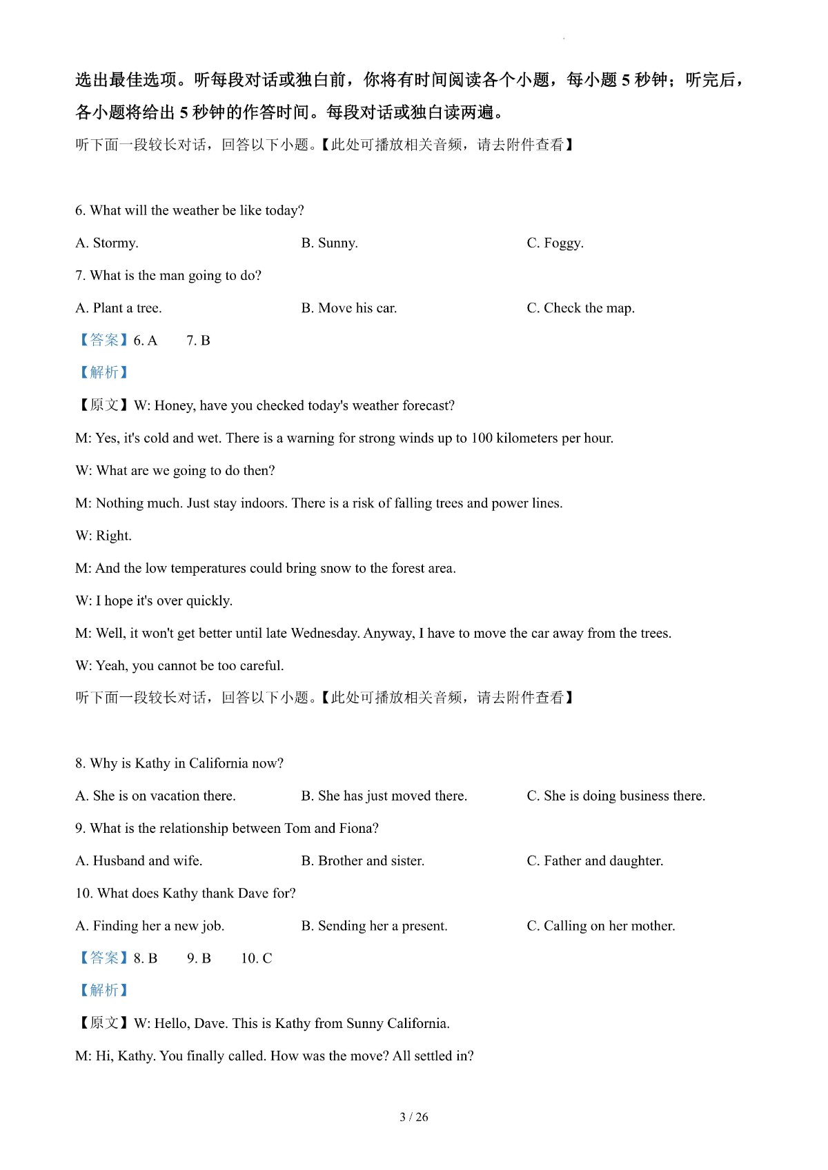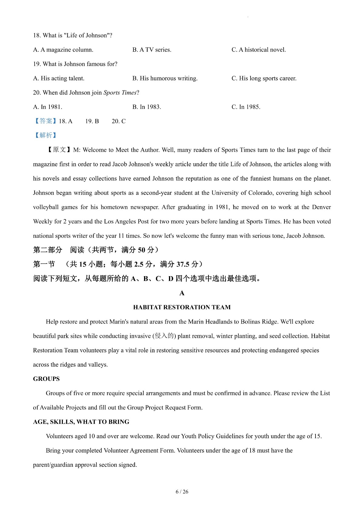 2024年高考真题——英语(新高考Ⅰ卷) 解析版