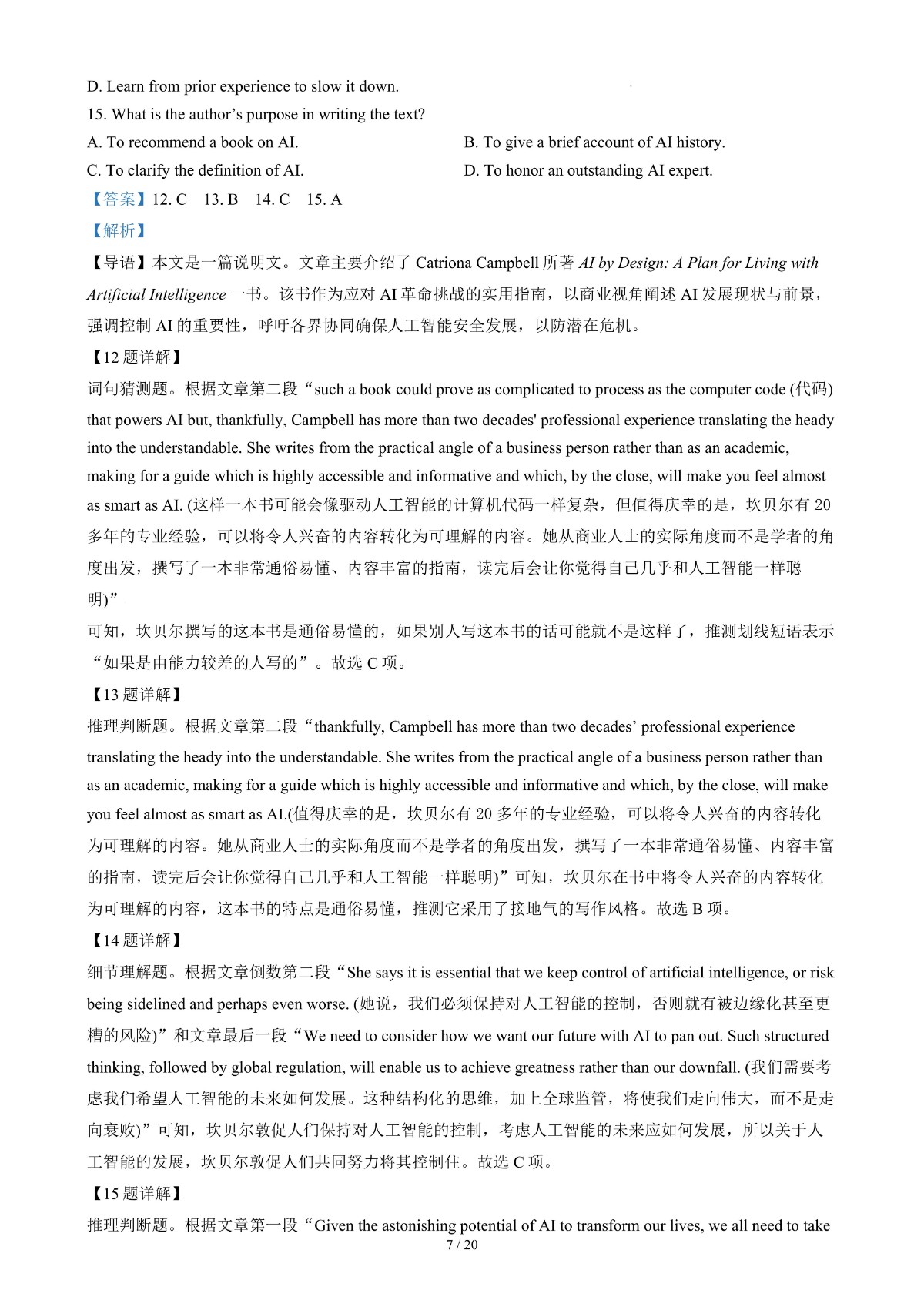 2024年高考真题——英语(新高考Ⅱ卷)解析版